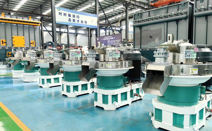 擠壓成型:經(jīng)過(guò)預(yù)處理的生物質(zhì)原料由喂料器均勻地送入木屑顆粒機(jī),在顆粒機(jī)中,旋轉(zhuǎn)的環(huán)模與壓輥之間形成擠壓空間,物料在壓力作用下通過(guò)??讛D出。同時(shí),由于壓力和摩擦產(chǎn)生熱量,使原料中的木質(zhì)素軟化并具有粘性,生物質(zhì)原料中的纖維相互纏繞、壓縮,木質(zhì)素充當(dāng)天然粘結(jié)劑,將松散的原料顆粒緊密結(jié)合在一起,形成圓柱狀顆粒,再由切刀將其切割成一定長(zhǎng)度的顆粒燃料。
